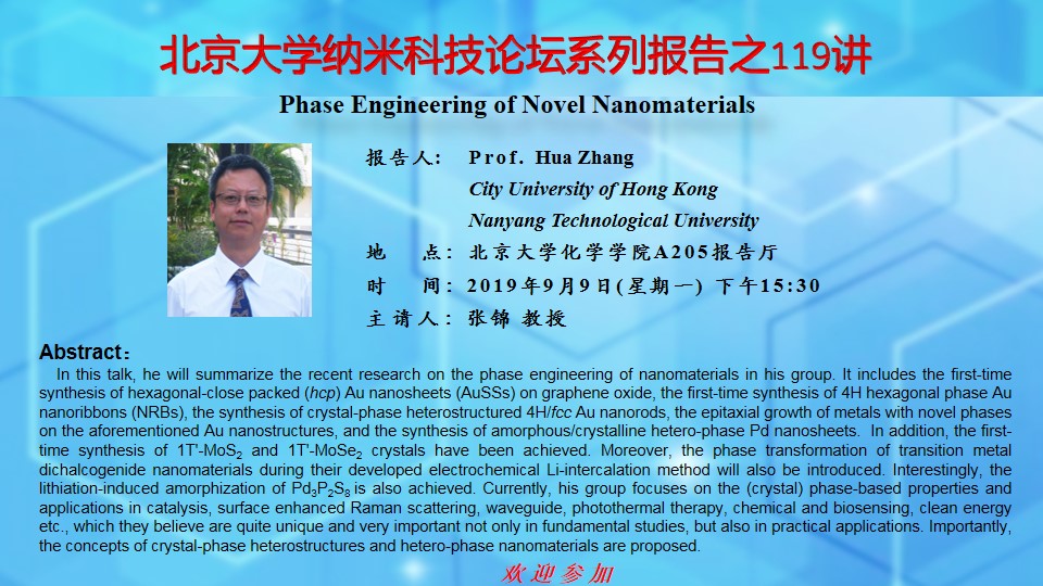 【伟德官方网站纳米科技论坛系列报告之119讲】Phase Engineering of Novel Nanomaterials