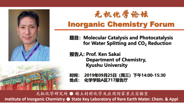 【无机化学论坛】Molecular Catalysis and Photocatalysis for Water Splitting and CO2 Reduction
