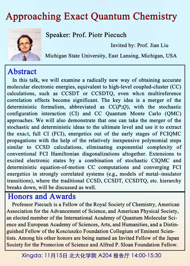 报告人: Prof. Piotr Piecuch