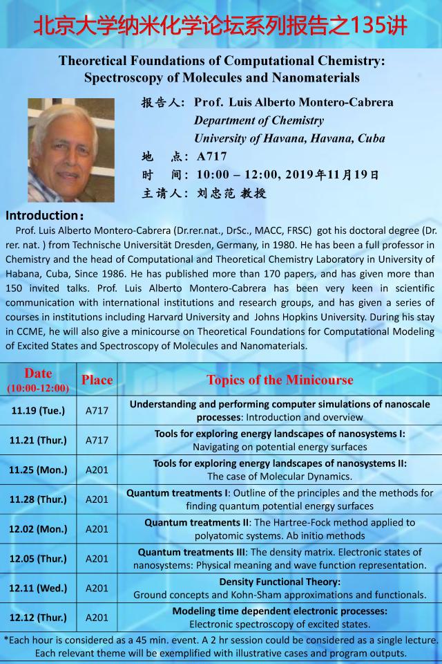【伟德官方网站纳米化学论坛系列报告之135讲】Theoretical Foundations of Computational Chemistry:Spectroscopy of Molecules and Nanomaterials