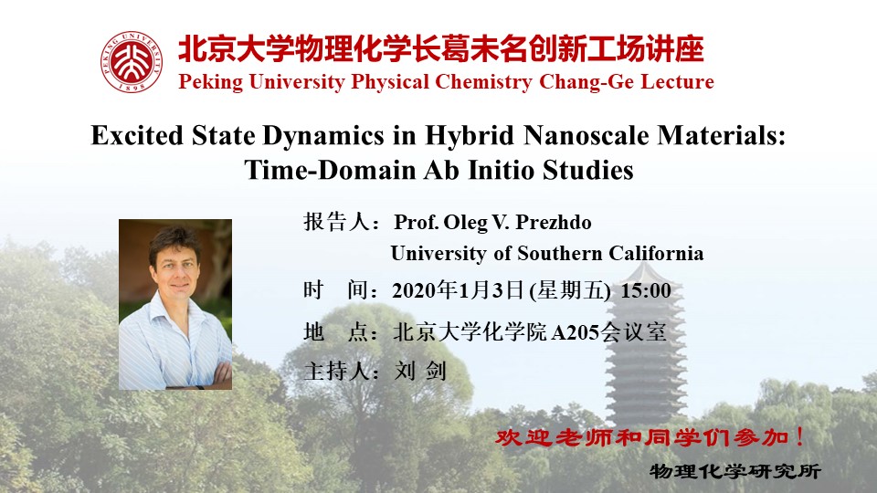 【伟德官方网站物理化学长葛未名创新工场讲座 】Excited State Dynamics in Hybrid Nanoscale Materials: Time-Domain Ab Initio Studies