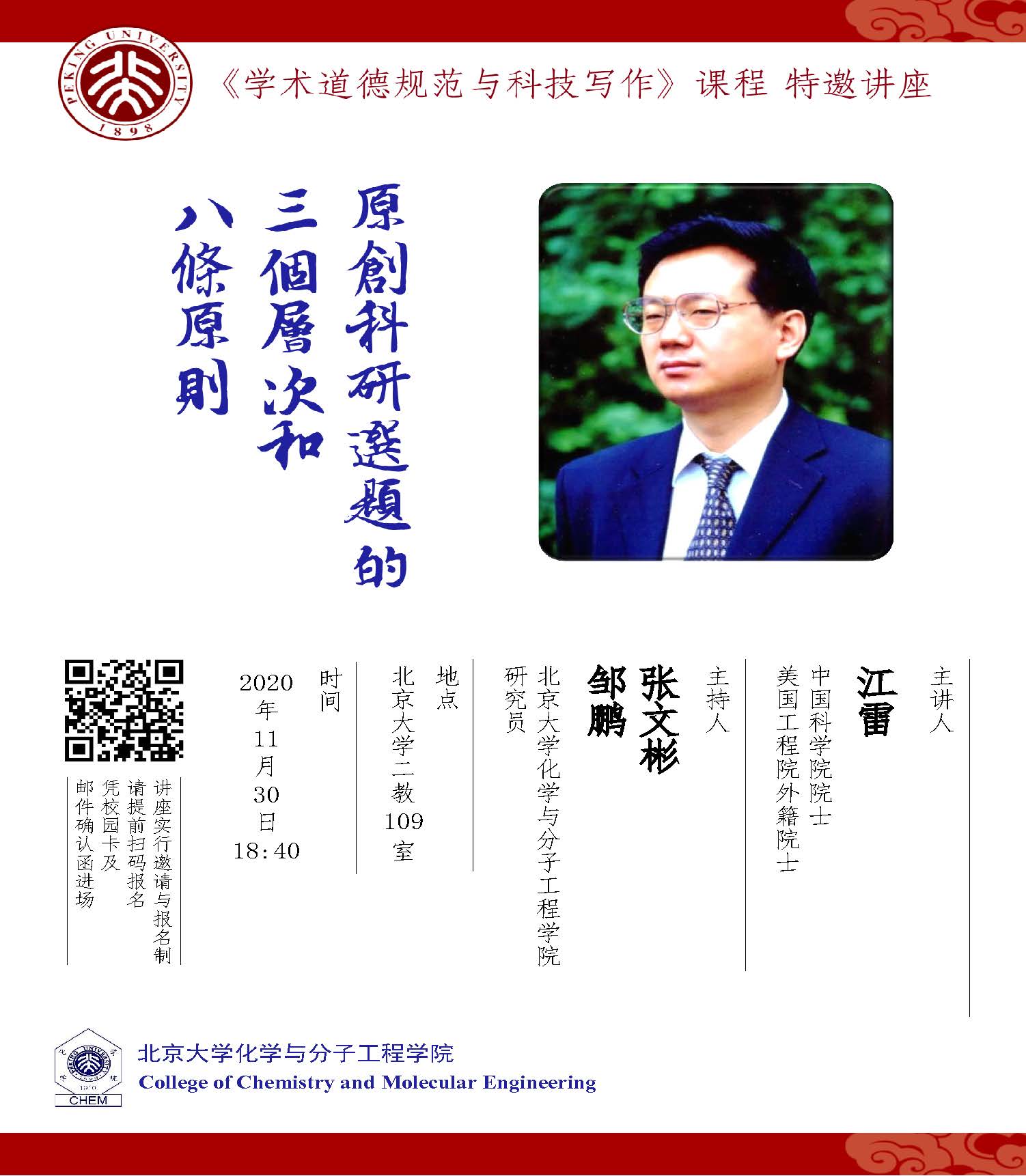 报告人:江雷(中国科学院院士,美国工程院外籍院士)