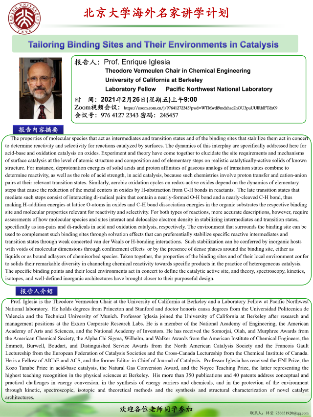 【伟德官方网站海外名家讲学计划】Tailoring Binding Sites and Their Environments in Catalysis