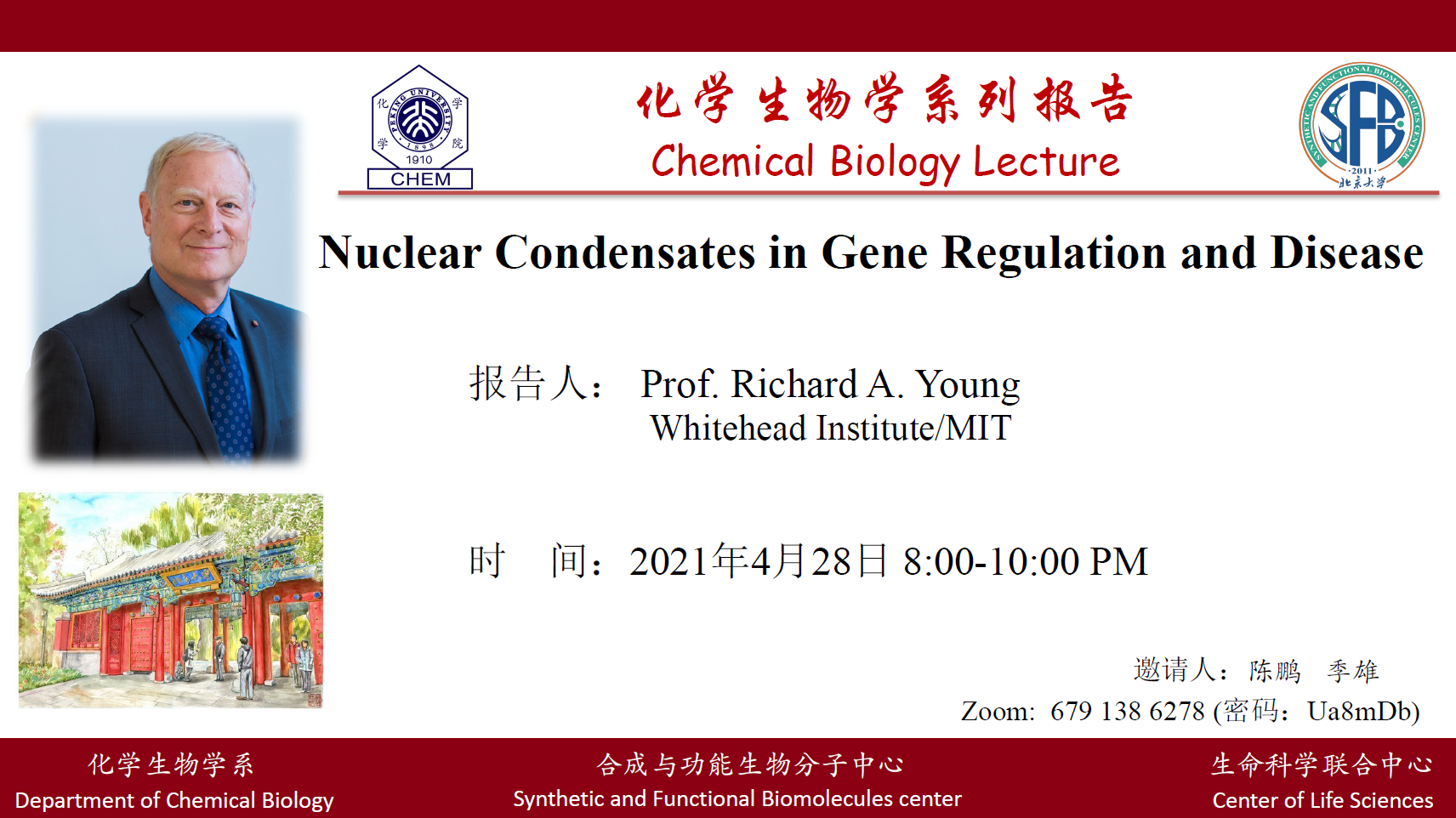 报告人: Prof. Richard A. Young Whitehead Institute/MIT 时间:2021年4月28日8:00-10:00 PM