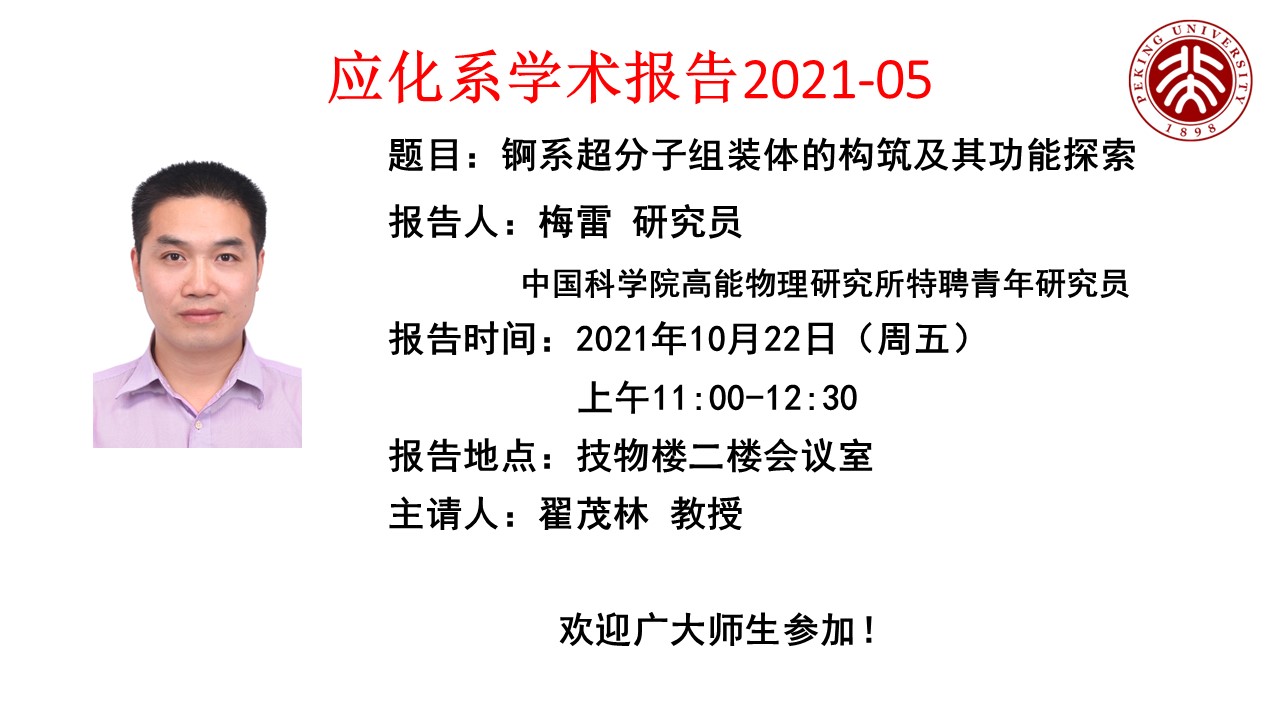 【应化系学术报告2021-05】锕系超分子组装体的构筑及其功能探索