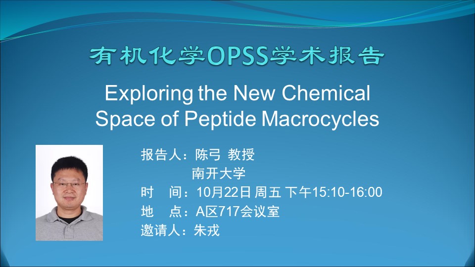【有机化学OPSS学术报告】Exploring the New Chemical Space of Peptide Macrocycles