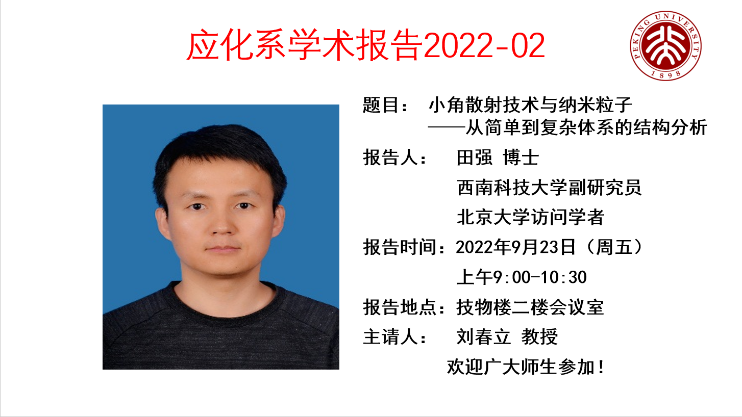 田强,博士,西南科技大学副研究员,伟德体育访问学者(2022-2023)。2010年毕业于兰州大学材料系材料物理与化学专业。2010~2017年在中国工程物理研究院核物理与化学研究所从事中子、X射线散射技术与应用研究工作。2014~2015年在匈牙利科学院Wigner物理研究中心从事博士后研究工作,主要开展中子小角散射谱仪的运行和高分子辐射效应研究。2018年至今,在西南科技大学环境友好能源材料国家重点实验室工作,主要开展散射技术、新型吸附材料以及核素与介质的相互作用研究。报告人长期基于国内外同步辐射和中子源的小角散射设施开展研究工作,在实验数据分析和模型拟合,在纳米粒子、高分子物理、胶体与界面化学等研究领域积累了丰富的经验。主持国家自然科学基金3项。在Langmuir、Polymer、Environ Sci Nano等期刊署名发表涉及小角散射技术应用的相关论文60余篇。