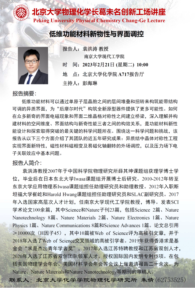 【伟德官方网站物理化学长葛未名创新工场讲座】低维功能材料新物性与界面调控