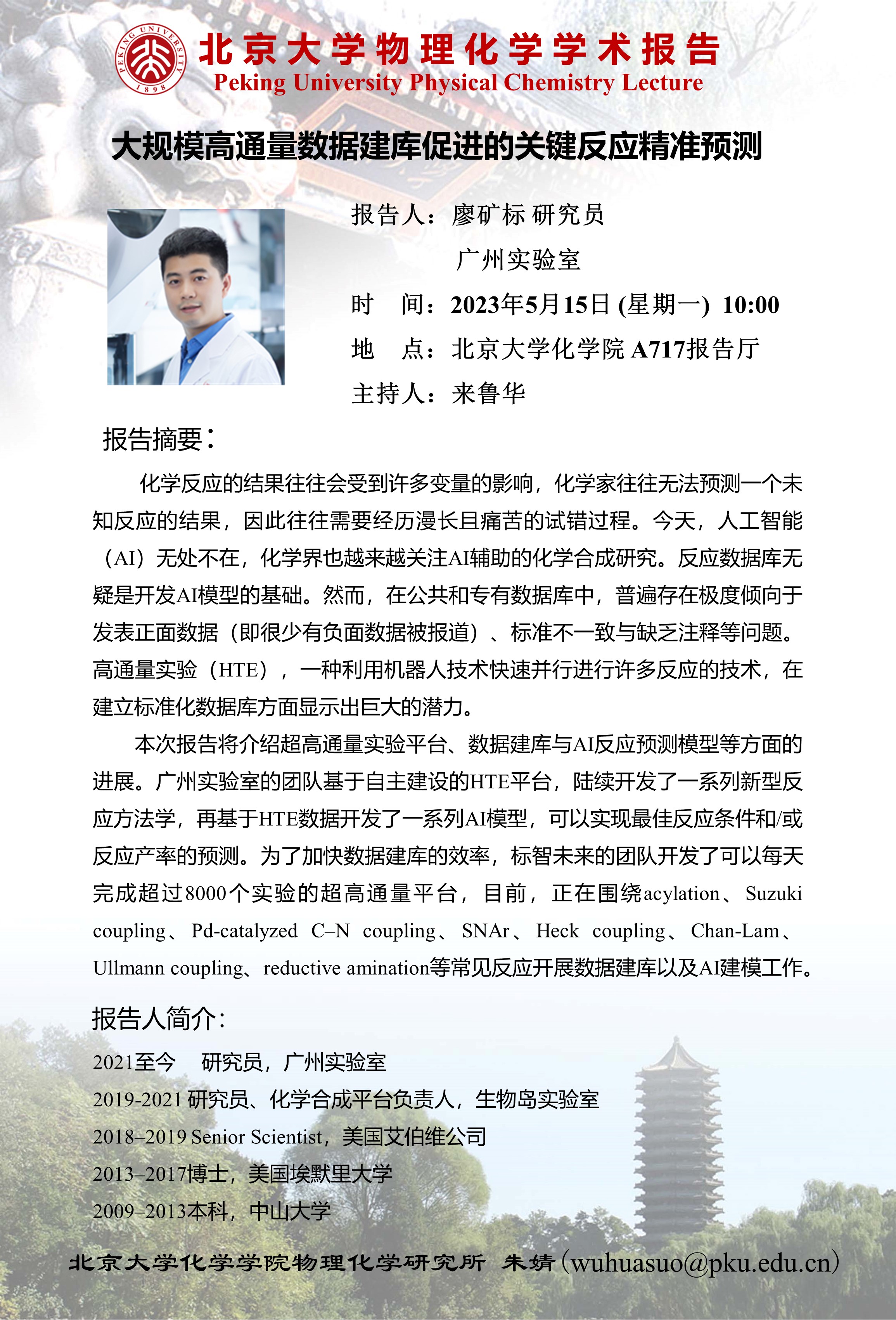 【伟德官方网站物理化学学术报告】大规模高通量数据建库促进的关键反应精准预测