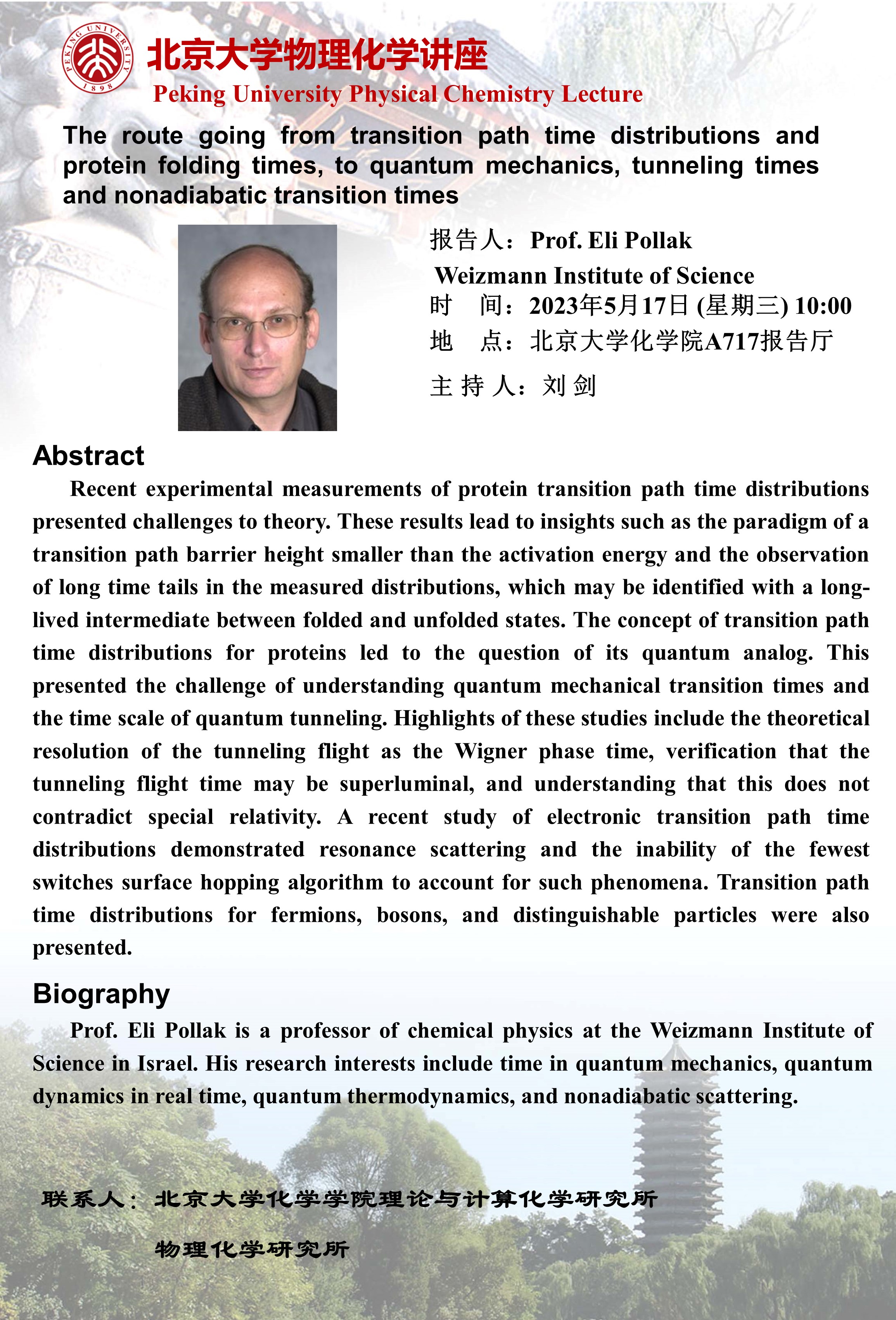 【伟德官方网站物理化学讲座】The route going from transition path time distributions and protein folding times, to quantum mechanics, tunneling times and nonadiabatic transition times