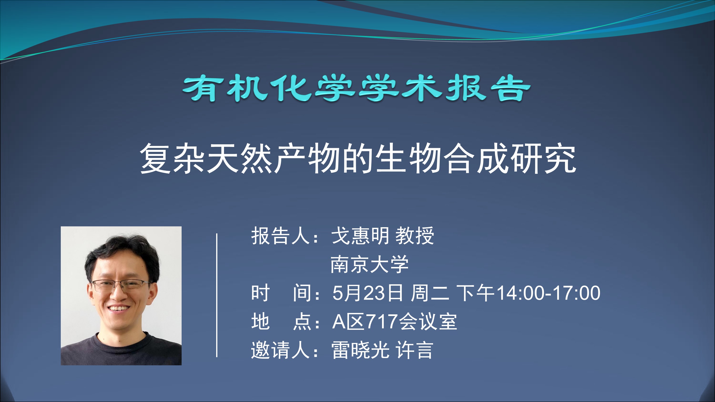 【有机化学学术报告】复杂天然产物的生物合成研究