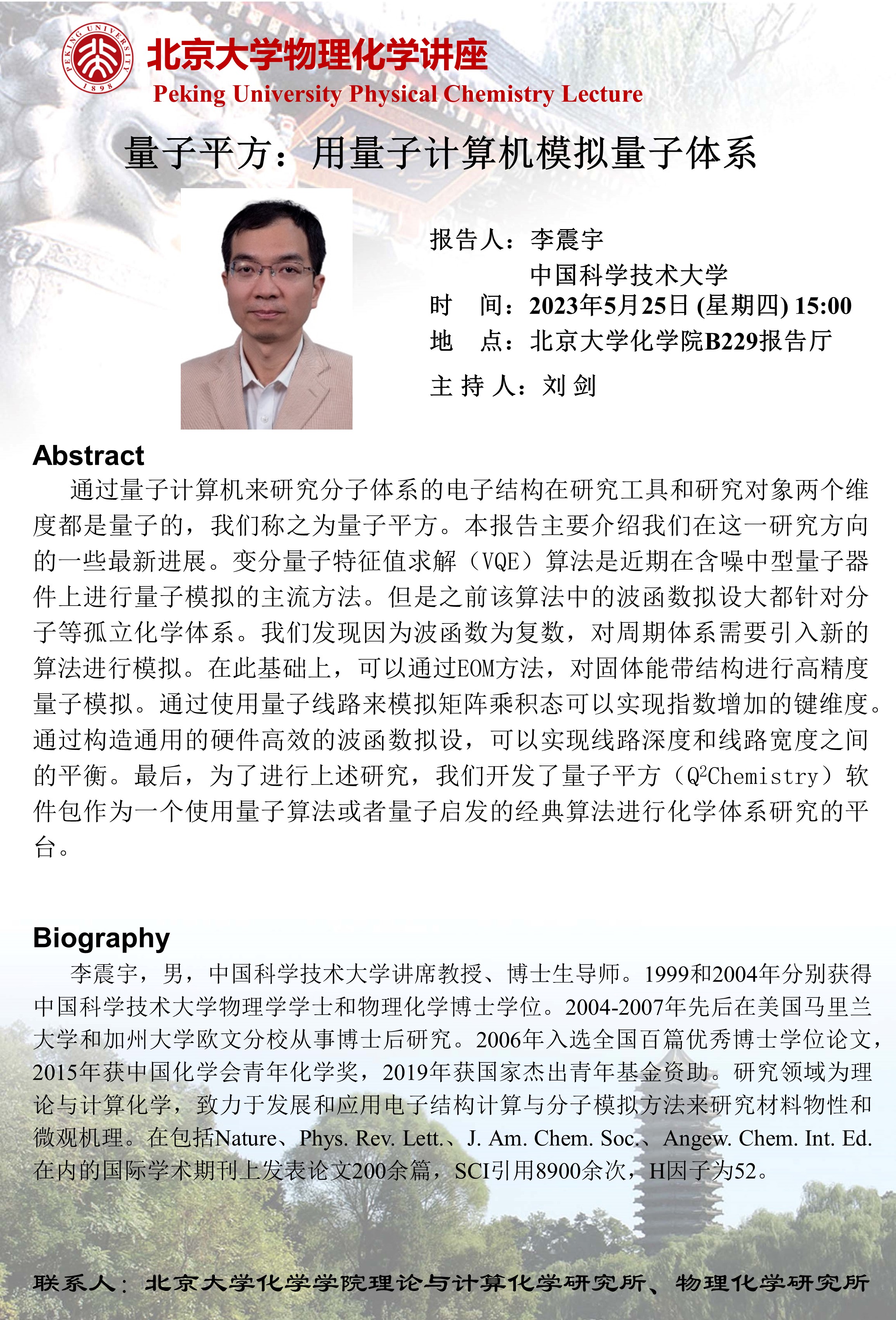 【伟德官方网站物理化学讲座】量子平方:用量子计算机模拟量子体系