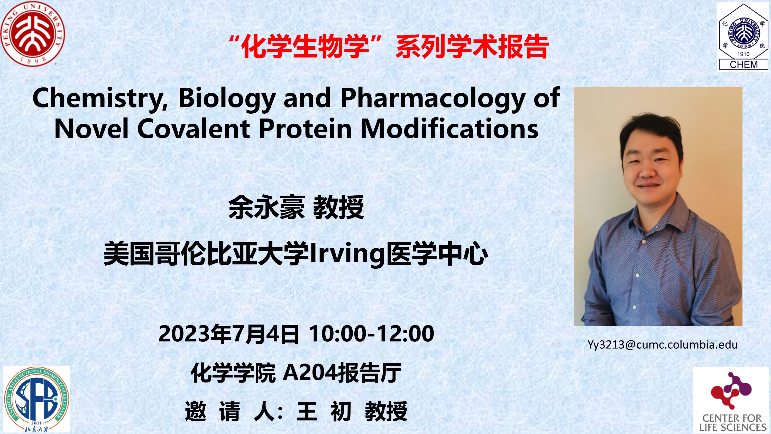 【“化员工物学”系列学术报告】Chemistry, Biology and Pharmacology of Novel Covalent Protein Modifications