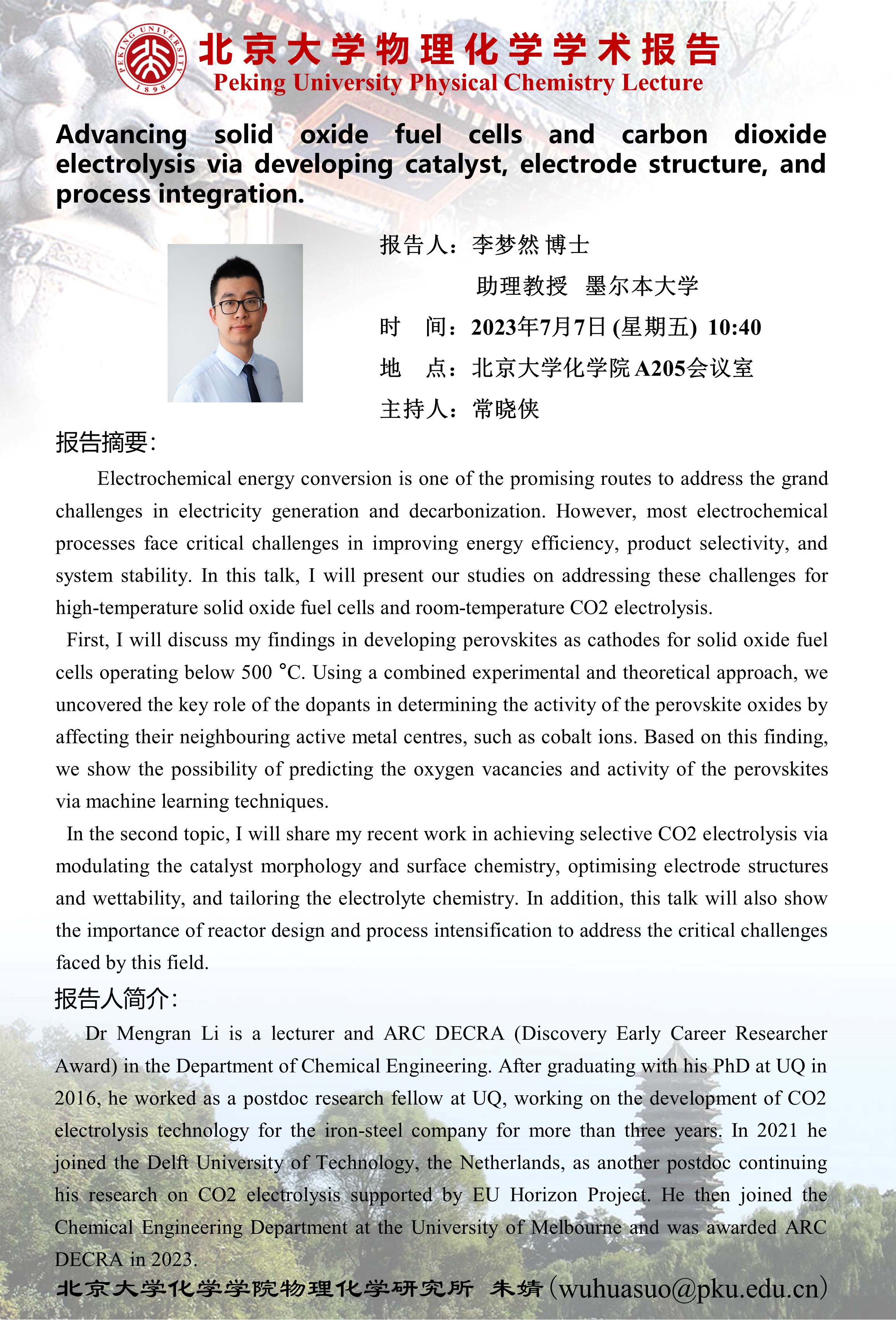 【伟德官方网站物理化学学术报告】Advancing solid oxide fuel cells and carbon dioxide electrolysis via developing catalyst, electrode structure, and process integration.