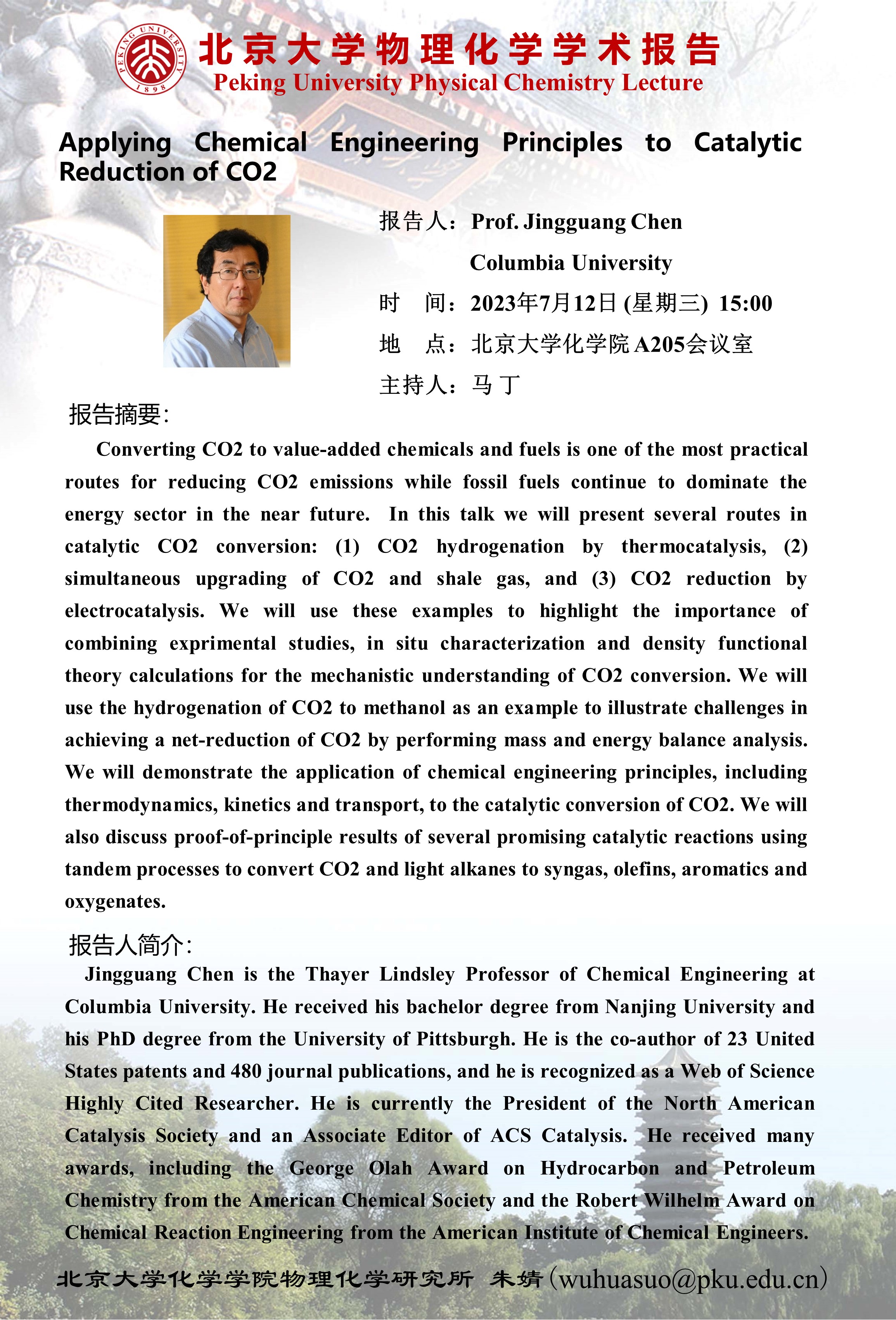 【伟德官方网站物理化学学术报告】Applying Chemical Engineering Principles to Catalytic Reduction of CO2