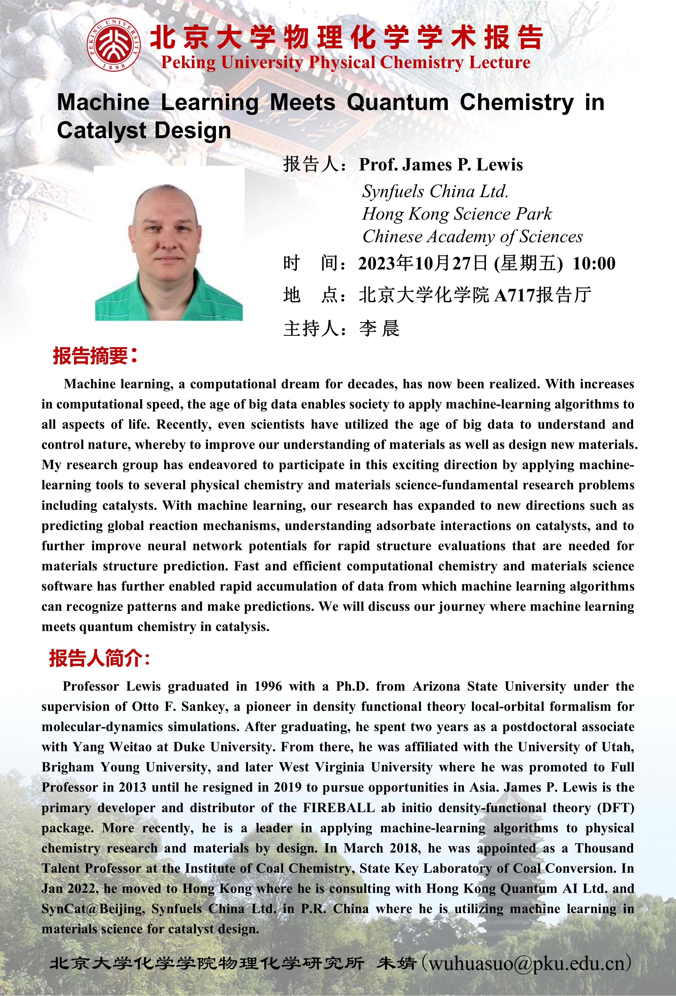【伟德官方网站物理化学学术报告】Machine Learning Meets Quantum Chemistry in Catalyst Design